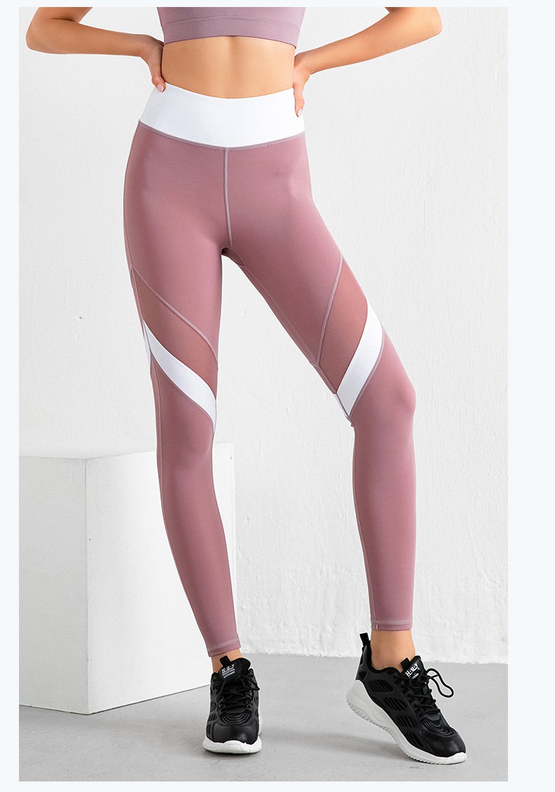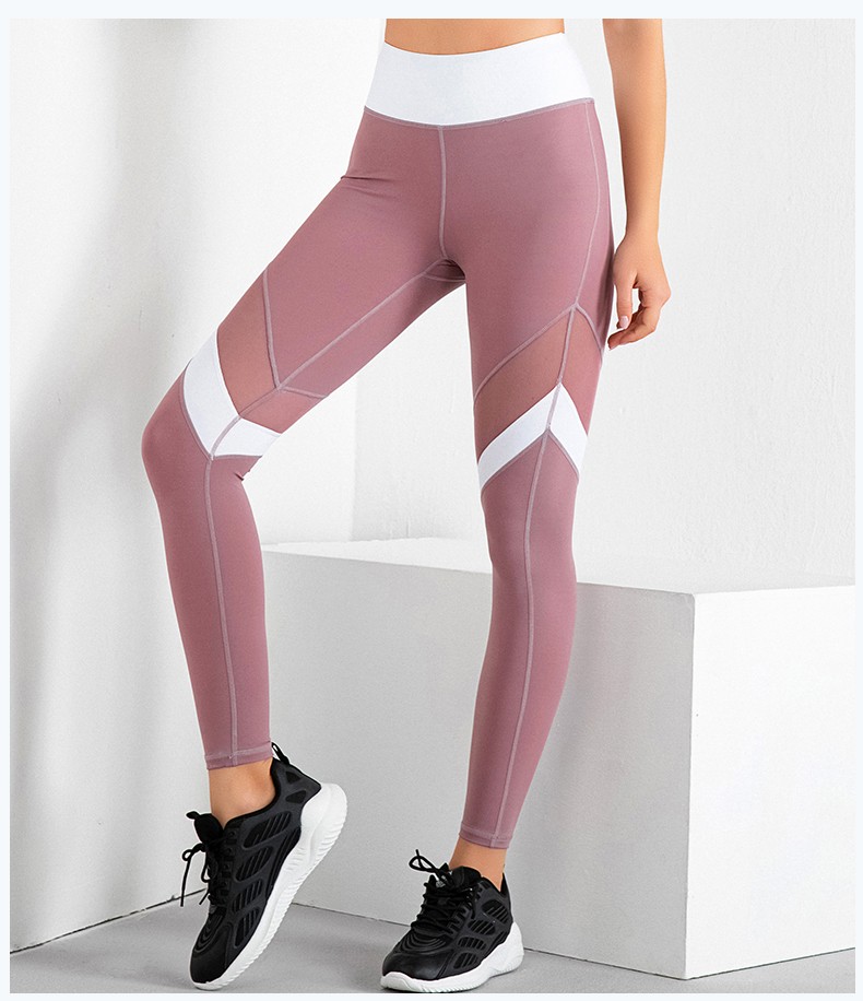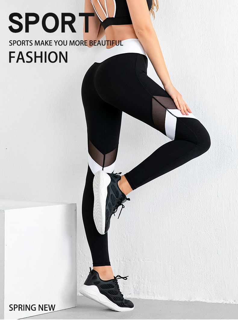 Nieuw design dames geborstelde legging hoge taille mesh patchwork lopende yogabroek